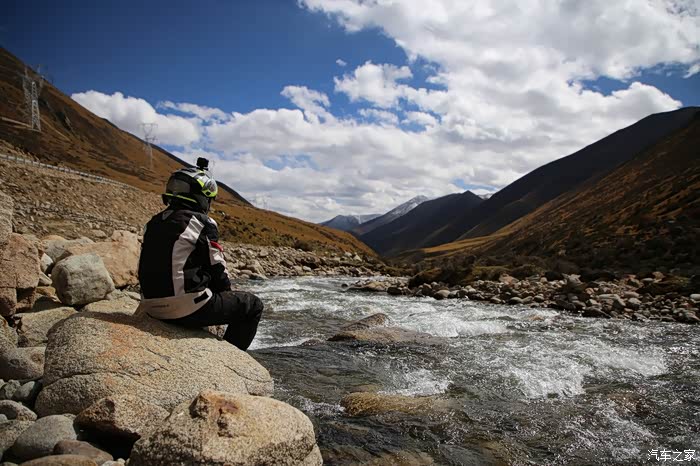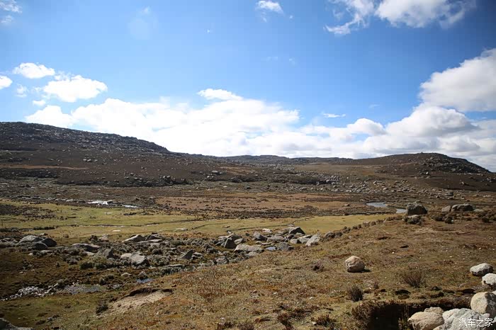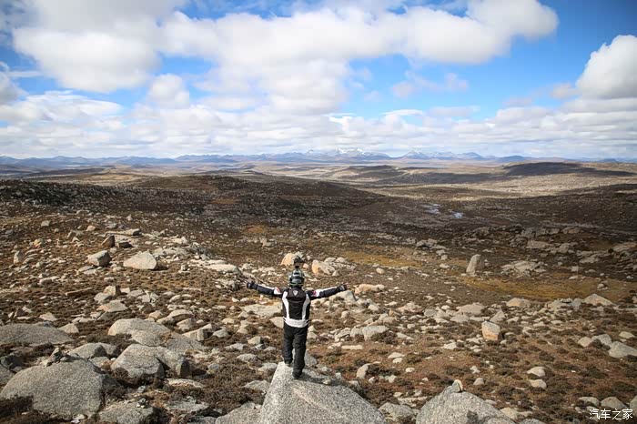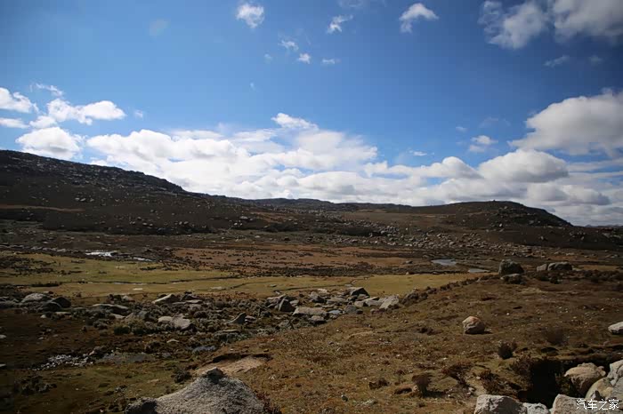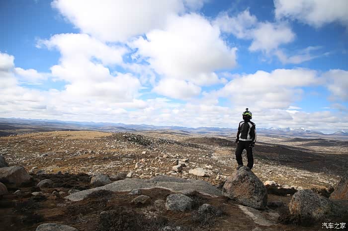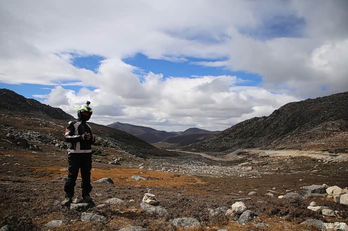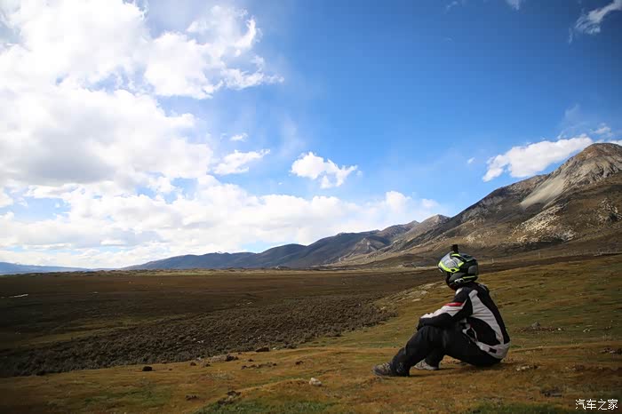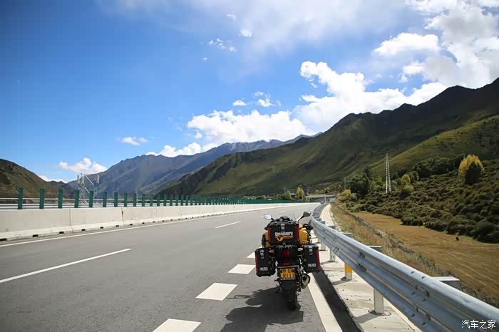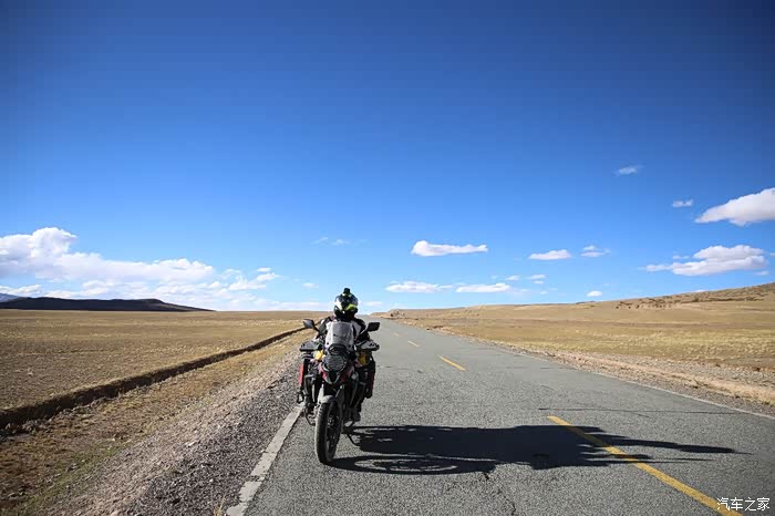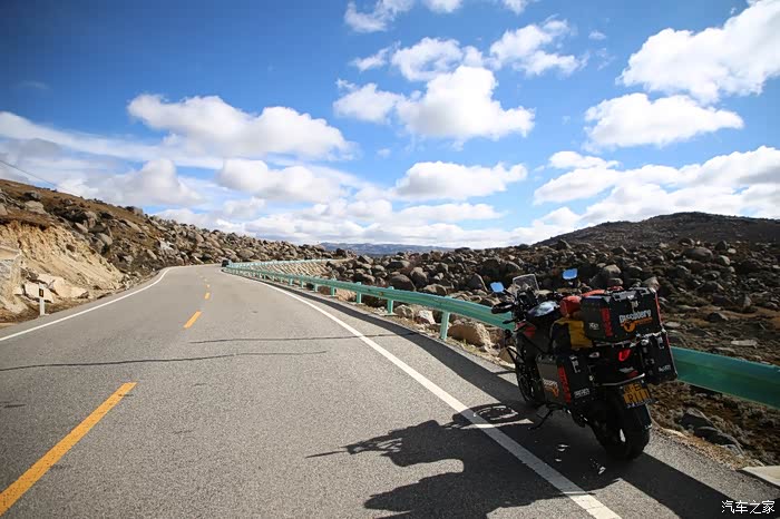 北京的车这边很多,看车牌可以知道都是外地人的车,一水的京N,京B的摩托车在这里很炸眼,不少北京车也不超你,就在后面尾随你,然后用手机各种录视频,今天天气格外的好,蓝天白云,云彩错落有致,色差也比较大,对比度极高,从理塘到稻城的路上荒地很多,也不乏有一些湖,越野是没太大戏的,全都是碎石子,之前看攻略说理塘到稻城亚丁路不好走,都是泥路,这次来给我的印象大有改观,路修的特别好,连个炮弹坑都看不到,唯一的难度就是弯道比较多,而且车子要爬山。