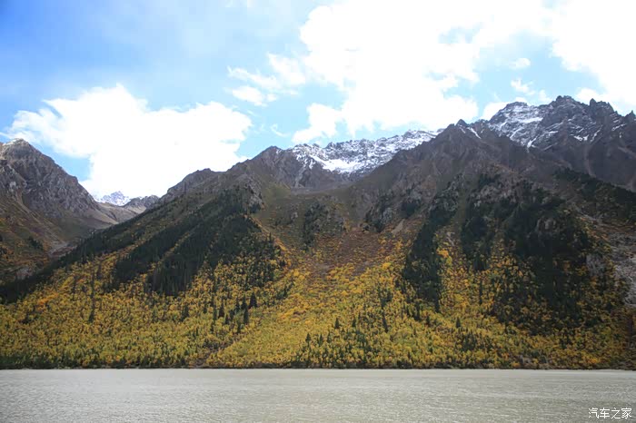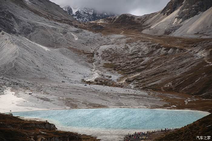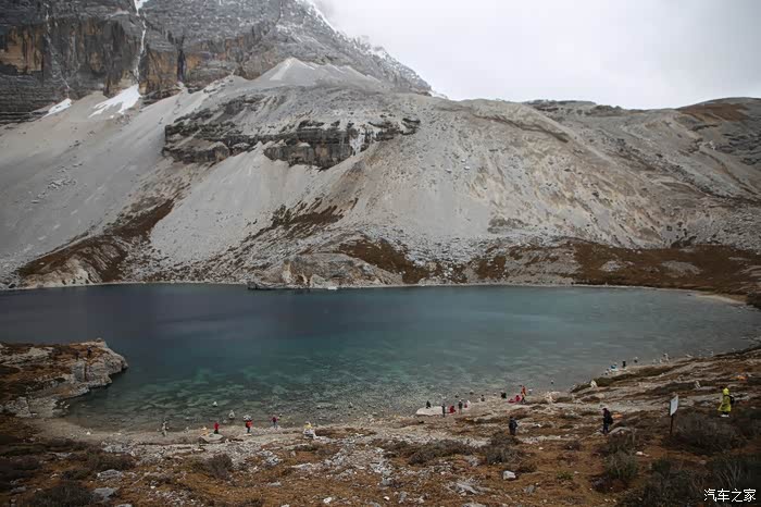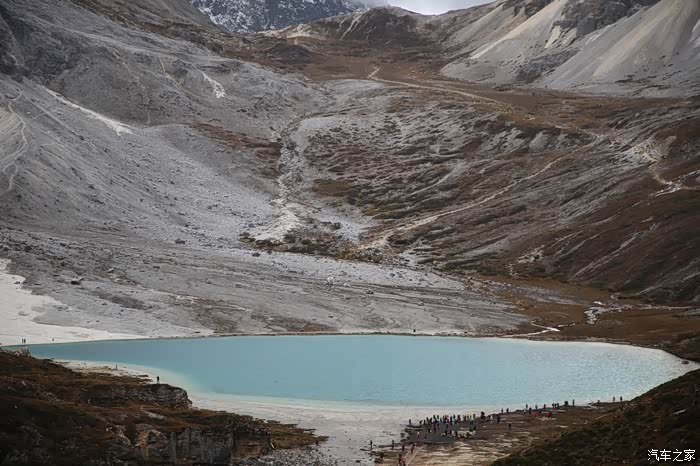 国道向前气温开始变低,这温度变化也太大了,刚才那帮人还穿短袖,现在就进入雪山区域了,四川的雪山都不是很高,很多都适合初级驴友攀登,譬如四姑娘山那几个峰,海子就在前方,所谓海子又是一种当地的称呼,和内蒙的泡子一样就是小湖的意思,公路转弯处有一个观景台,可以下到湖边,这个海子是这片海子里面最大的,据说这边有大大小小海子1000多个,路上能看到的不到10个。