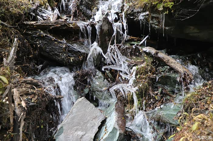 不知道为什么天气更冷了,前些日子看到川藏线大雪感到心有余悸,这次轮到我了,一直盘旋上升,明显感觉到路面都是冰,速度也不敢太快,最可恶的就是大车,他们每次经过的时候都会洒水,10分钟左右就会结冰,只能走绕着他们的车辙走,也不知道导航导的是什么路线,感觉越走越高,路上到处可以看到雾凇,期间还下了一阵子的雪,狂风肆虐,大白天的浑身都冻的瑟瑟发抖。