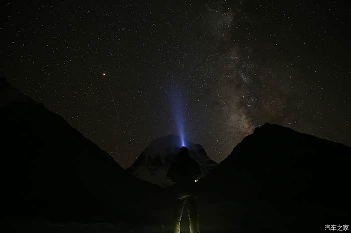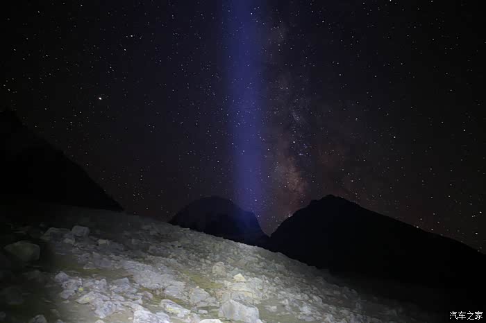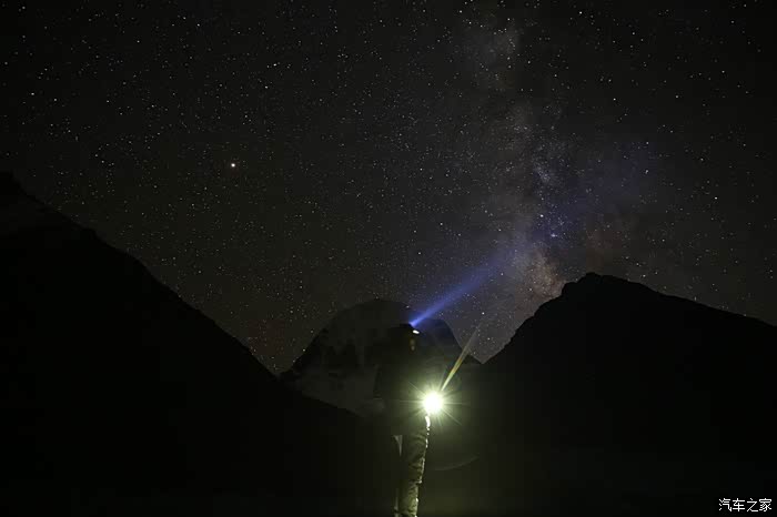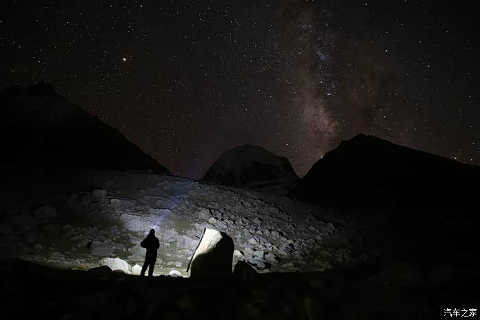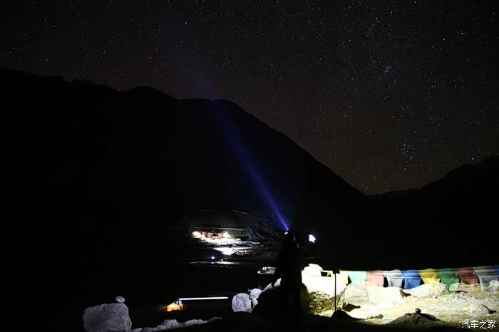 晚上大约10点多的时候开始进入拍星阶段了,因为外面比较冷,而且大部分人都要明天早上4点出发翻山口,所以全部都睡了,就剩下我自己一个人带着手电开始找位置了,刚开始在山下面,不过效果不太好,最后又爬到了5600米的山脚下,电池在这个地方基本上全部失灵了,来这里之前带了3快满电的单反电池,现在全部歇菜了,抬头可以看到银河,非常非常的明显,在烂的相机都可以拍出来。