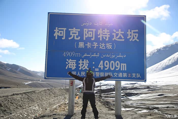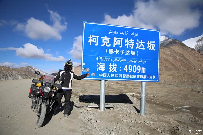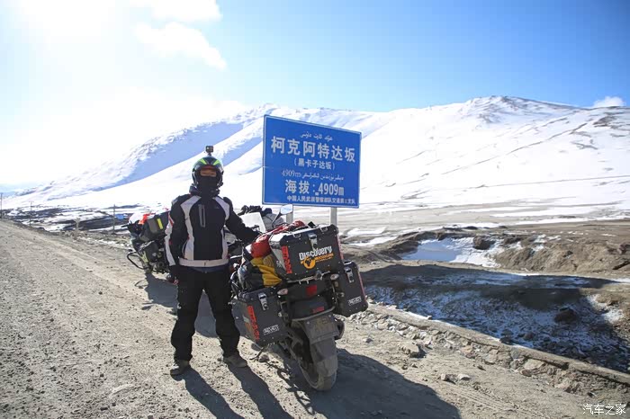 没多远就追上了他们,他们骑的还是比较仔细,暴风眼摩友飞车了,炮弹坑是防不胜防,需要时刻提防,速度不能拉太快,一旦中坑后几乎就全玩完了,大约80公里开始进入烂路阶段,烂路主要集中在碎石和冻沙,可怕的是冻沙,结合了砂石路面的滑和冰面的滑,在一次转弯的时候我差点滑倒了,幸好速度慢,一脚踹地又把自己救起来了,几乎慢速过弯都会这绝招,速度不会太快,全部是2 3档行车,高速档成了累赘,烂路的山顶是黑卡子达坂,也就是柯克阿特达坂,海拔依然没到5000米。