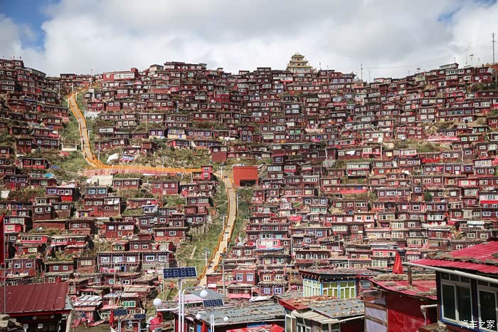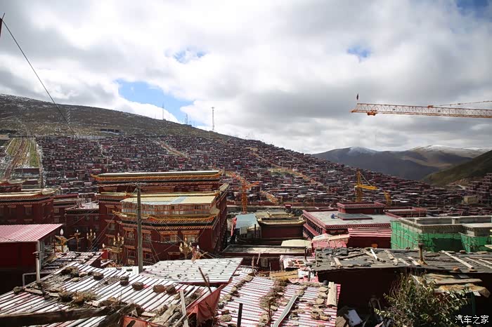 佛学院的扩张速度很快,但是可以肯定的是几乎都是违章建筑,网上也盛传这个地方因为防火不达标可能过几年就要拆除了,所以最近能过来最好还是过来看看,不然真没了可就后悔了,佛学院中间有个大吊车正在繁忙的施工作业,拍照需要避开它,整点的时候这里会有喇叭播放佛经,学院周围的大经桶几乎不会停,路上行人不多,僧人也都在自己屋子里面修行,除了坛城真不知道这里还有什么好逛的。