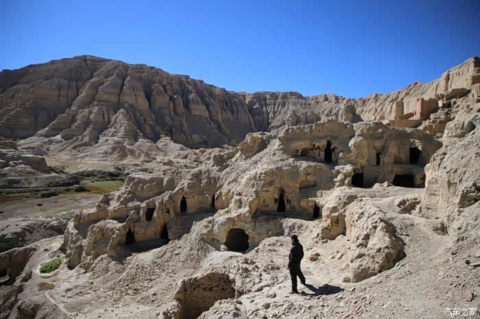 王朝的洞穴比较多,一些土墙都已经开始松动了,一摸一手灰,介绍上说这个地方的洞以前是住人的,不过正常人观察咋可能呢,一个是上去很费劲,第二个是洞穴太小了,而且挨着也非常密,推测应该是修行的地方,这个遗址也不像一个国家的城堡,比底下的村子还小,这个王朝以前的前身是象雄国,据说统一过阿里地区,属于吐蕃王朝的一部分,随着吐蕃的覆灭,这个王朝也瓦解了,一共经历了16个赞普。