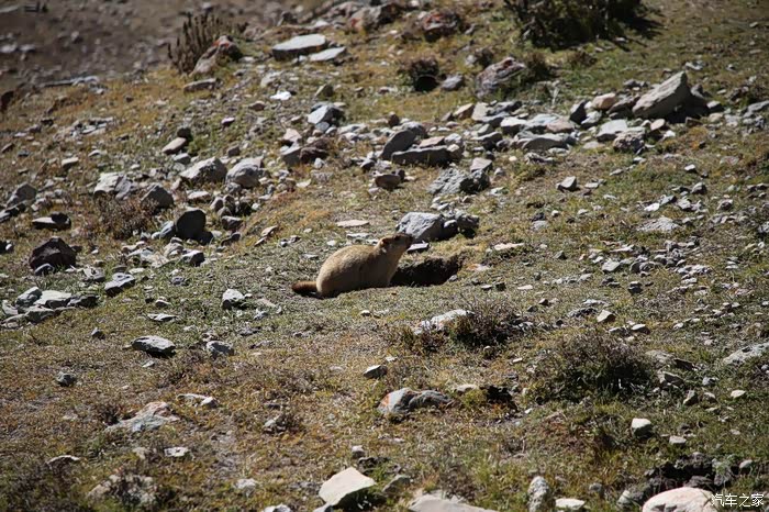 无论走多远,气温依然是很低的,很多藏民懒洋洋的躺在路边的草丛上休息,也有一些藏民全家都盘坐在一起喝下午茶,这段路属于平原性质,可以看到土拨鼠,他们是怕人的,拉姆拉措那边也有很多土拨鼠,一般也是抓不到的,他们的洞穴会有多个出口,你就算堵住一个,然后用东西赶他们出来也不行,因为我试验过,最后的办法就是美食的引诱,这招果然是非常奏效的,扔个破果子他们就上当。