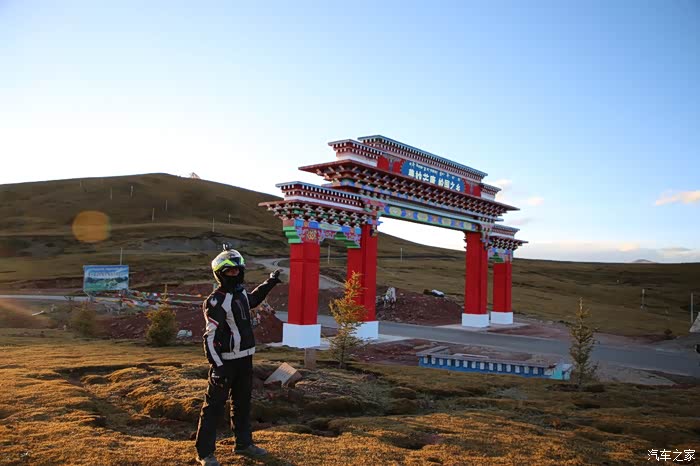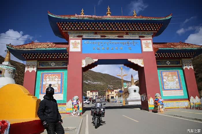 到目前为止还没有吃饭,而且还没有到达理塘,也就是所谓的世界高城,此时路上天气骤变,一侧艳阳高照,而另一侧乌云密布感觉马上要暴风雨,空气中也飘着雪花,此时的风特别大,轮胎感觉非常滑,速度降低到了50,比较幸运的是最终还是安全的到了理塘,理塘县城修的不错,比内地很多县城修的都好,靠近西藏这侧的大门富丽堂皇的,找了一家面馆吃完饭后,看了看天还亮着,计划夜行到稻城县,因为出来的比较急,没在理塘加油,搞又折返了好几次。