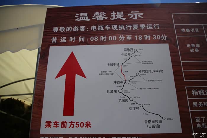 昨天幸好没住这边,亚丁景区外面的房子价格已经炒到600了单间了,而景区内部也是可以住宿的,有9个停靠站,刚上大巴的时候,司机师傅会提醒游客有在中途住宿几号站下车的请提前告知,这次我主要是走大圈,其实说是大圈路程也不远,总体下来来回不到10公里,可以选择乘坐电瓶车,这个也是要收费的,因为游客比较多,电瓶车会出现拥堵状况,结果是中途就要下车,后来回程的时候才发现不是因为车堵了,而是因为回程的车人不满不发车,都在那排着呢。