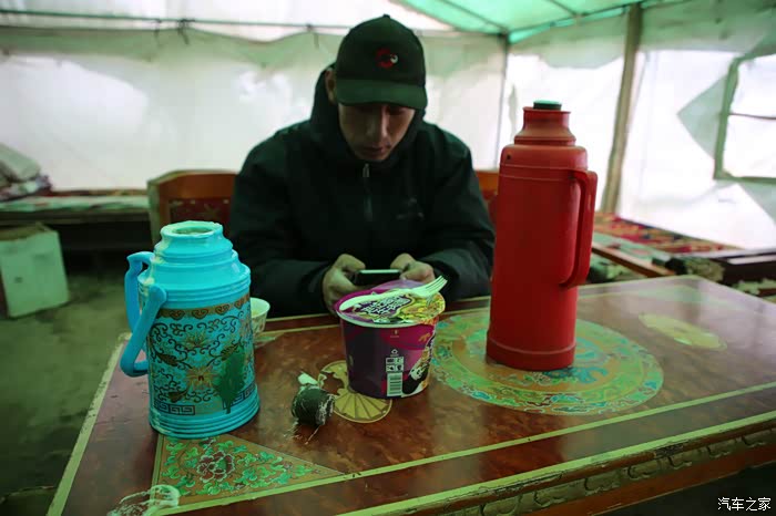功夫不负有心人终于看到一个驿站了,可以吃饭了,老板是藏民,可以吃炒面和炒饭,当然这些东西不要抱有太大期望,只能告诉你还是方便面来的实际,先说说这个炒面,半碗水几根面条,吃了和没吃一样,这样搞的我太无奈了,屋里有一个户外团队,他们是昨天翻过的卓玛拉山口,住在前面的帐篷,今天刚走到这里,感觉他们休息的就不错,不过可惜的是他们没看到冈仁波齐的星空。