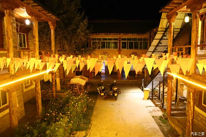 因为走的是夜路,路上错过了太多的观景台,但是可以意识到这些景点的存在,只能后天往回走的时候在扫这些地方了,气温变的异常的低,带上滑雪手套都冻的不行,射灯因为接触不良一直不能用,骑着一个瞎车走了80公里,太危险了不能在前行了,就在稻城县住了下来,这个地方距离亚丁景区不远了不到100公里,不过住宿和饮食环境比亚丁要强很多,县城比较土豪晚上还有免费的音乐喷泉,与周围的穷县城对比起来显得格格不入。