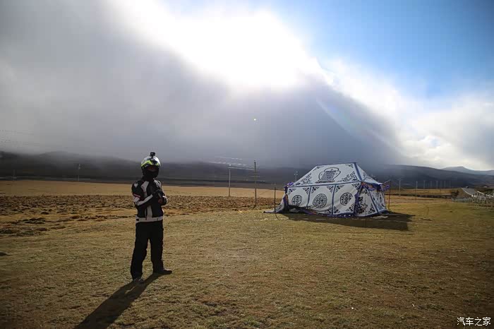 下午走了5个小时,其中4个小时在下雨,雨天赶路已经成了习惯,为了麻痹自己直接换上了全盔,外面什么声音我都听不到,今天计划是到色达,但是色达是到佛学院还是色达县这个还没决定,打开导航看了一下,原来色达县在佛学院的北面,为了不走回头路可以选择住在炉霍县或者洛若乡,洛若乡住宿条件应该比较紧张,优选还是炉霍县,没多久就到了甘孜县,这个地方和甘孜州有啥关系呢?进入317开始加油,加油站是不给当地摩托车加油的,外地的像我们这么远来的都是破例加油,沿途设卡检查的警察也这么说。
