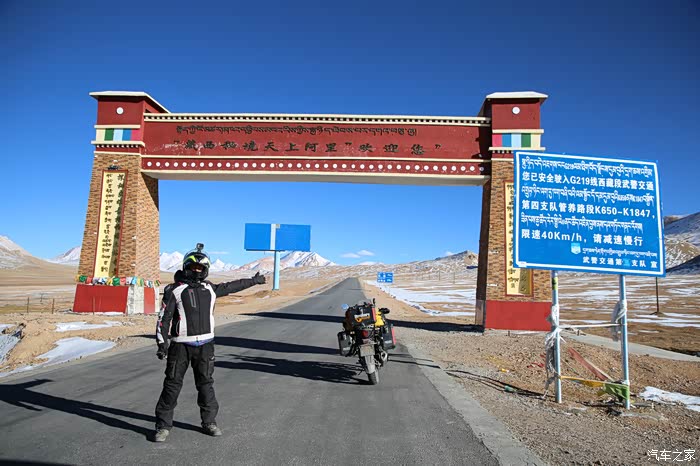 看到西藏密境天上阿里欢迎您的大牌子,恭喜你已经进入西藏了,还有不少阿里的大门,看看能不能收集齐了,至少去日喀则的路上会经过一个阿里大门,这个就略显荒凉,这段路的海拔平均是4900米,只要进入西藏的地界就开始进入漫长的限速过程了,摩托车还比较好,速度也不上去,远处可以看到很多野生动物,藏羚羊和野牛比较多,公路依然是时好时坏,期间飞车了很多次,主要原因就是飞驰过程中突然来个大坑。