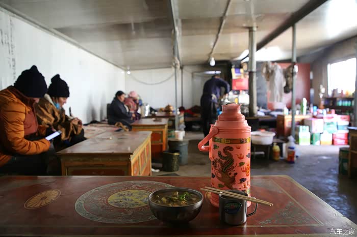 幸运的是夜里11点40到了多玛乡,但是由于之前很多车都困在了麻扎,所以这些车今天的目的地就是多玛,客房全满,气温很低,最后找了一家东北饺子馆,刚开始老板不让我住,因为我就一个人,他晚上要锁门,最后软磨硬泡下一个人包了一层,他把门也给锁上了,多玛是个非常小的地方,但是里面有加油站,这边是不给加到油箱里且11点后不给加油,加油站工作人员看我也不容易,直接都破例了,顺便也叮嘱说,这边92号汽油和95号汽油都是一样的,加95号的纯属都上当了。