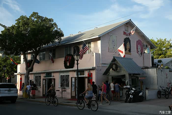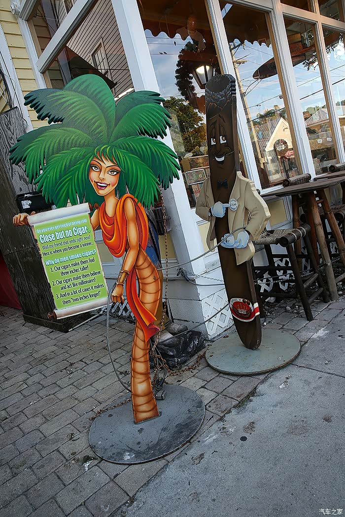 基维斯特不是南部最大的岛屿,但却是最有名的,这都到处都是2层的木屋建筑,而且所有人家都装扮的非常小资,有品位,色彩明亮,屋前路边盛开着簇簇鲜花,宽大的棕榈叶翠绿欲滴。这里有海明威的故居,据说他在这里完成了《永别了,武器》,而那本《老人与海》的灵感就是来自于基韦斯特的生活。还有一个古老的灯塔,我们三人都各自分别来过这里,关于海明威和灯塔的游记大家可以看看我以前的文章,也在汽车之家网站上又,那是一次房车东海岸南北穿越的连载。自驾房车美国东部海岸深度游http://club.autohome.com.cn/bbs/thread-o-200042-18993039-1.html