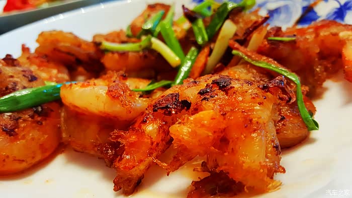 ▲虾肉的外壳已经有些焦糊,毕竟是喷上了一些酱油,而虾肉的毛边也已经炸脆爆开,有些味道