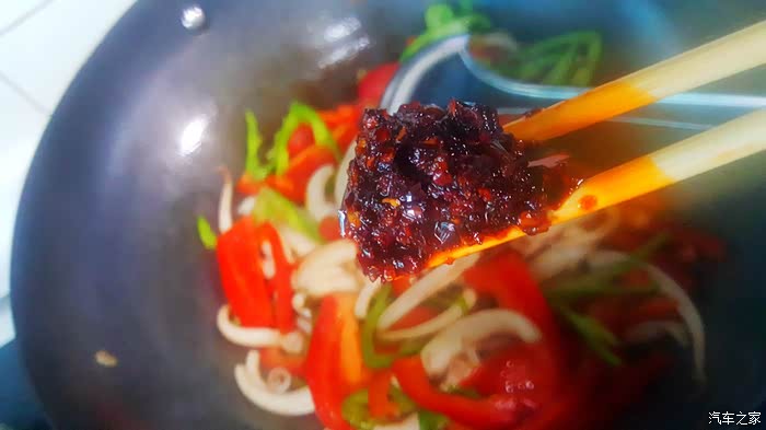 ▲我加了不是很多,就用筷子夹了一点点,这个酱十分的黏稠,不知道到底加了多少的淀粉在里面