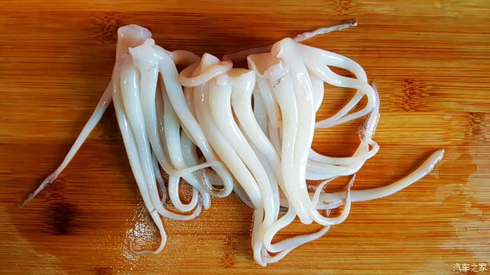 ▲鱿鱼须……最麻烦的鱿鱼须,本来鱿鱼须有一层外皮,这就需要撕开了,撕开的方法就是直接用蛮劲去扯,但是如果扯不好就会扯断,反正我扯的时候都不想去照相了,可想而知有多累……