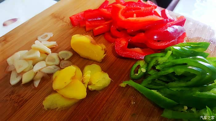 ▲准备很多的姜片,蒜片以及青红椒