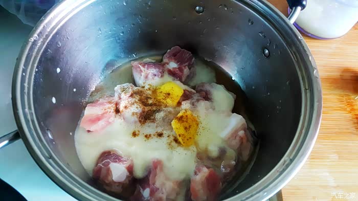 ▲在腌制的时候还可以加入一些淀粉,然后好好的抓一抓,腌制时间也就一个小时了……
