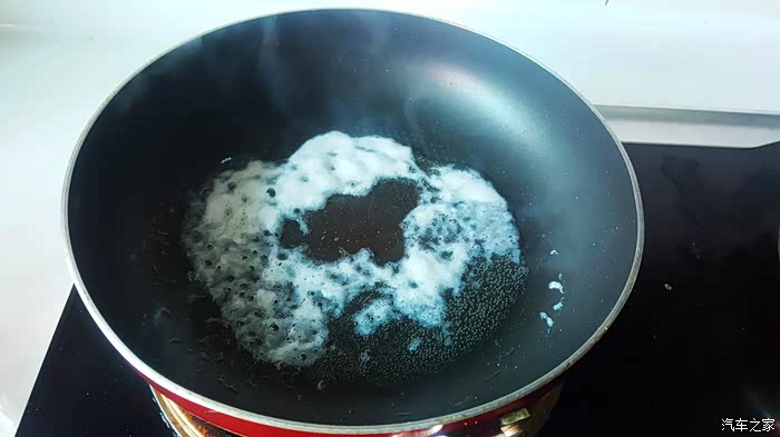 ▲炒的过程中会起泡收缩,无视,继续炒出香味,但是别炒糊了,毕竟是蒜蓉,很细很细的蒜蓉