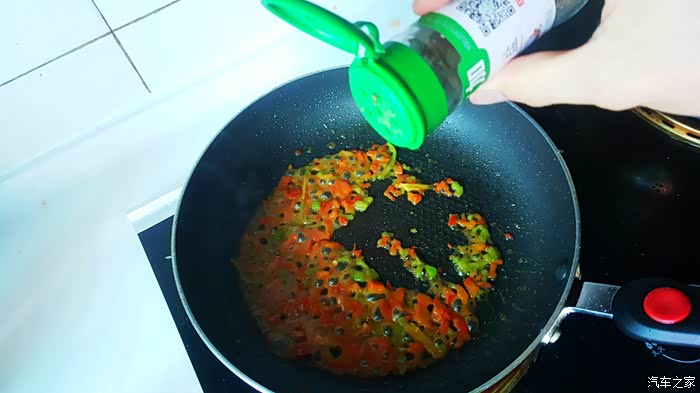 ▲加入姜片,加入蒜蓉,加入一些五香粉