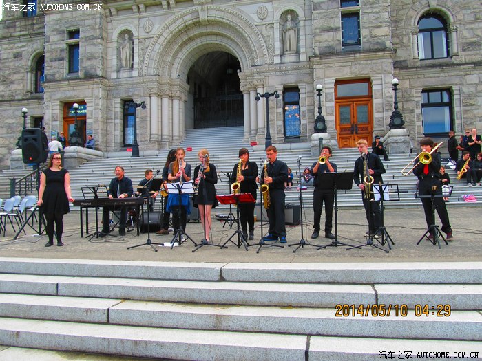 议会大厦门口学生乐队在表演 。充满青春活力的靓男靓女,也是一道美丽风景线哟.