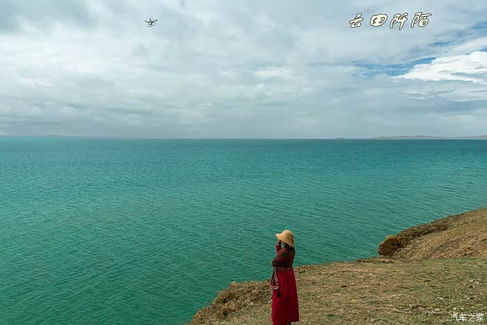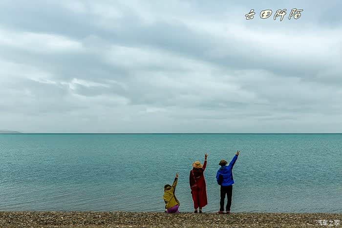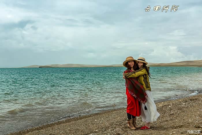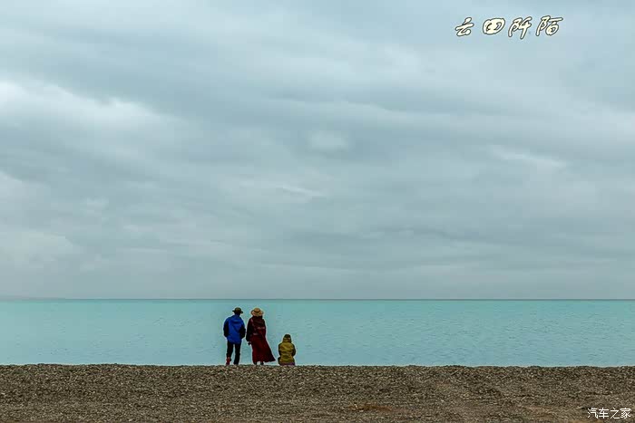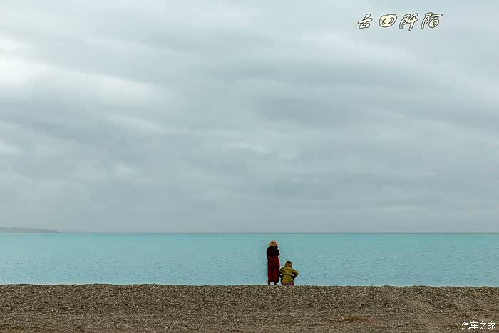 站在同一地方,不由想起去年来时,天蓝水绿,水天一线的美景(见2015西行游记)。可见天气太重要了。风很大,懒妞一下来固态重演又蹲在那了,咱还是架起相机支架拍张全家福,懒妞居然都没站起来。
