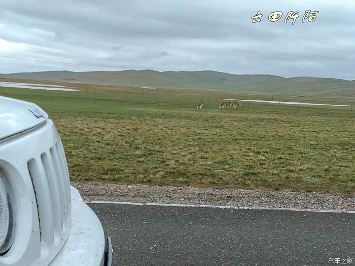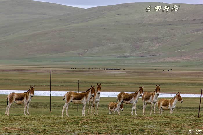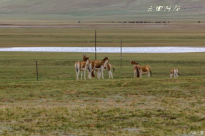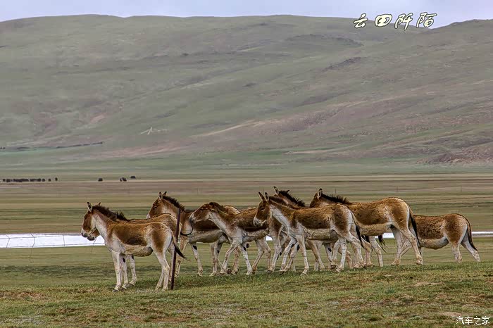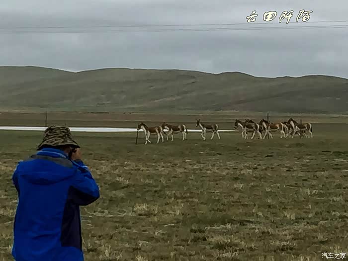 发现藏野驴群,有十几头,正在一滩水源地喝水,距离公路三五十米,停车。懒妞自然不会下车,想更近些,很机敏的动物,发现我们了,停止喝水,开始走动,我们停,它们也停,不该打扰人家的,不能再往近走了,用远焦距拍摄足以。