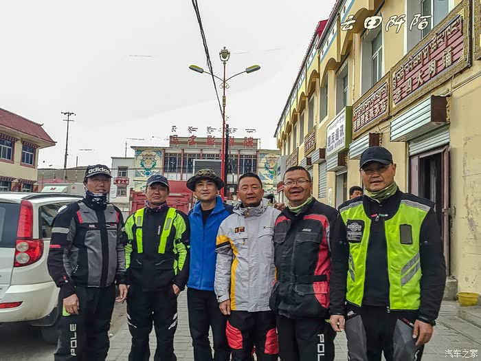 补好胎回到县城,居然又遇到西昌骑行五人!大家寒暄,欢乐的合影,他们准备明天去双湖。问了一下我们路况和里程,他们决定明天包车进双湖,也是因明天预报有雨,高原雨天骑摩托太辛苦。听我们说没门票了,调侃说,包车费就当是买门票了。