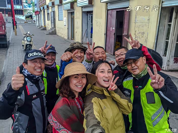 戴眼镜的就是队长,曾经骑行去过西藏,他们都叫他“主席”,真心佩服这几位骑行的大哥。大家互相留了联系方式,合影留念一张。祝他们旅途平安顺利!
