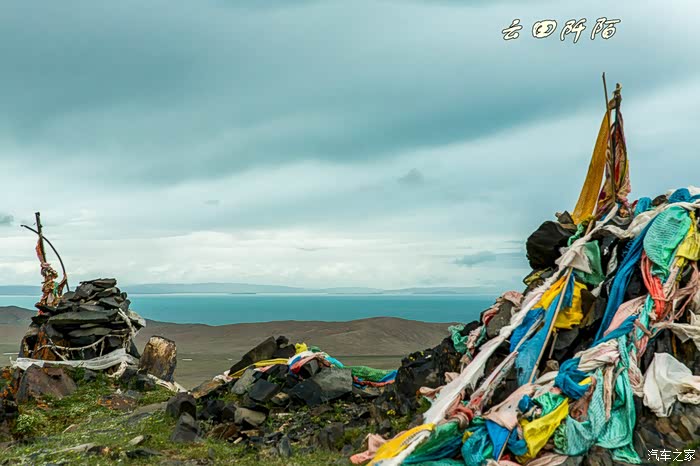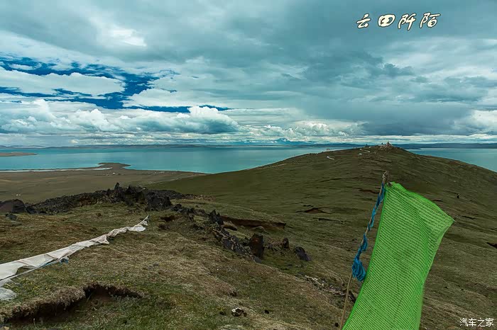 俩女眷远远跟随我,前往牛头碑对面山头经幡处,去观看对面的扎陵湖。