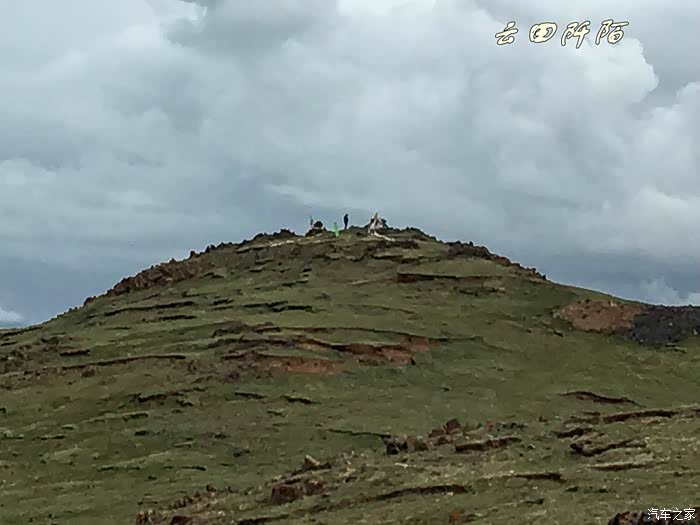 女儿穿的少直说冷,先回车上了,我独自去前方另一座更高山头,更近距离观望扎陵湖。这是LP从刚才那山头上拍的我,小黑点,看看又爬上去多高。