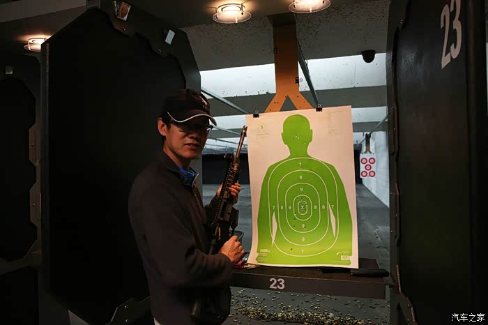 人生第一次真枪实弹的射击开始了!第一发10环!距离2米左右!哈哈,把教练吓跑了,估计他是准备教我怎么用,上了一颗子弹上膛,告诉我们怎么射击,结果我就打出去了!