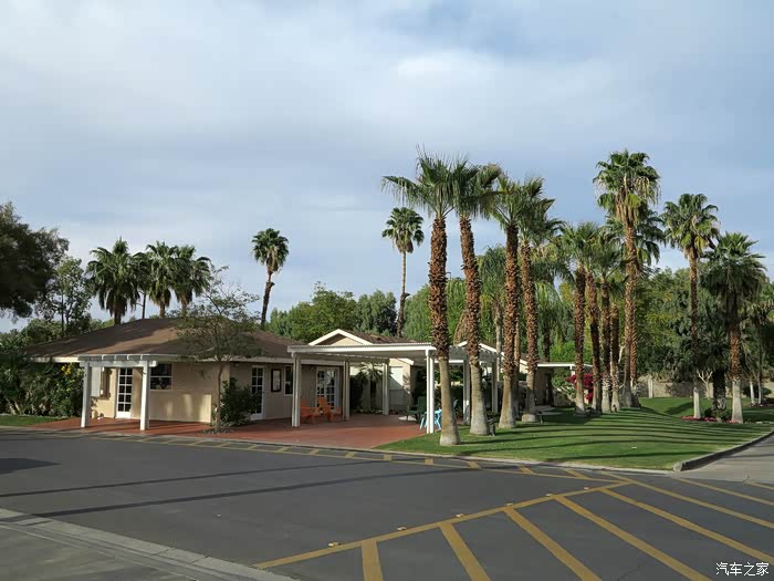 离开图森小城沿着10号公路一直向西,经过有中国城之说的菲尼克斯(凤凰城)行程390英里,我们到达一个叫沙漠温泉的小城市(desert hot Spring)入住Sands RV & Golf Resort 房车营地,看名字就可以知道这里是房车营地和高尔夫球场的联合体,加上当地还有口碑很好的温泉,还是在沙漠里面,所以这里就是一个西部的度假胜地了,的确这里的RV虽然在西部但还真不便宜,我们询问了三家,最便宜的是48美元,网上最贵的是98美元。我们找了最便宜的了,这里只是我们预计的过路停靠点。来这里的目的是美国西部著名的国家公园约书亚树,从南部走过美国的沙漠戈壁地带,和中国见到的沙漠戈壁不太一样,美国的沙漠戈壁基本路两边都是绿色覆盖的,只是比东部中部多了一些裸露土地的地方,另外风沙灰尘真的很多了,这点和北京感觉很相似,空气干燥,空气污染也比东部严重,会有淡淡的雾霾了!在这种地方赶路还是不下雨为好,真的会很脏,在美国洗车那是很贵的!不过我们的营地真的是非常漂亮,性价比非常高,尤其是一进门地方的九洞高尔夫球场,实在是享受,营地里的老人们的工作就是高尔夫!没有球童,都是自己开着高尔夫车下场的。在沙漠里面玩高尔夫那是奢华的享受。我们住的营地有500个车位,环境优美,有多一半都是固定的营地房屋,少数像我们这样短期停留的。
