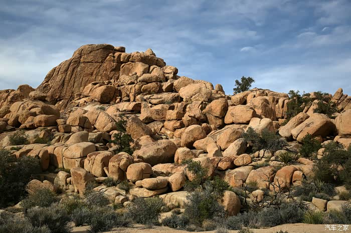 一路我们都思考约书亚树是个什么东西,进去后发现这里的确非常奇特,就是公园外不远的距离这种树也无法生存,只有在公园里面山谷之间大量的这种独一无二的树木成片连群,非常奇妙,另外这里的地质地貌也是非常独特的,巨大山谷之间很多巨大的石头山分布其中。原本想一天走完实际做不到,这个国家公园的门票可以7天有效,说明这个公园足以让你连续玩几天的,可以东西和南北两次穿越。