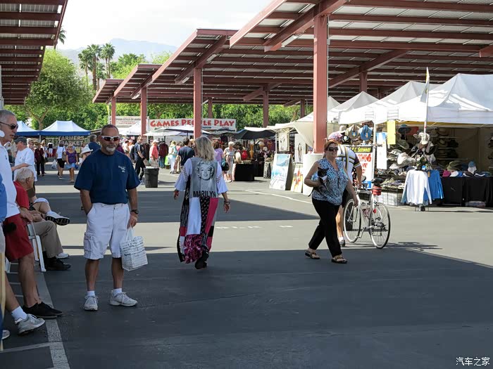 在离我们住地15英里的地方,一个大学里面,沙漠学院,集市就在学校的几个巨大的停车棚下面。人是真的多,找停车位那是相当的难!免费的没有了,只好找了收费4美元的停车场。不过没有找到收费员!