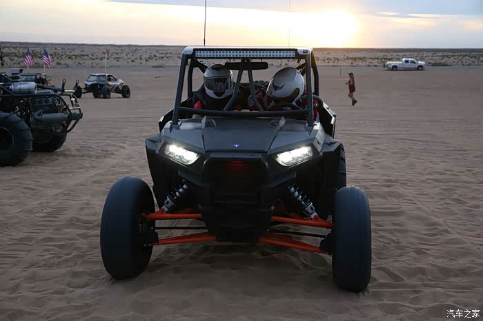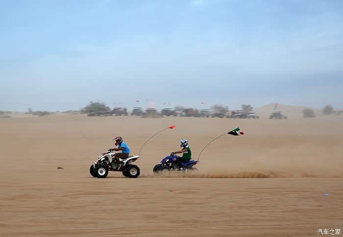 白天大家是这样自己在沙漠里面玩的,到处都是轰鸣声,沙漠腹地尘土飞扬