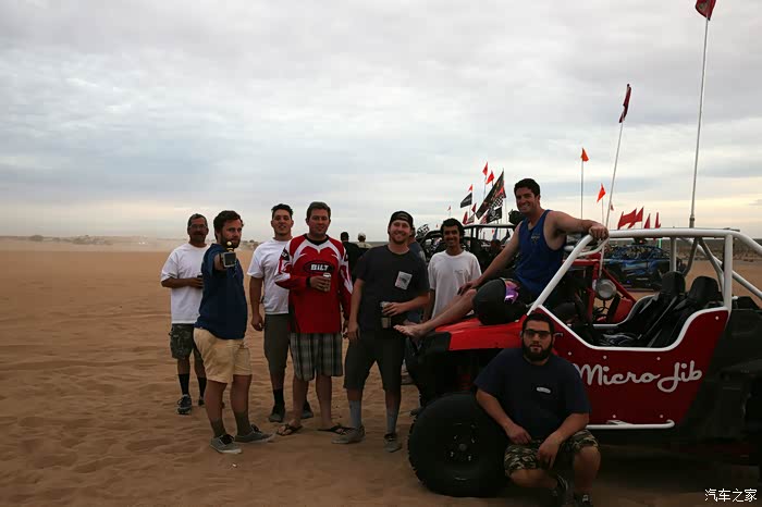 新认识的一帮越野狂人,都是30左右的小伙子,看见我的大相机就要我给他们拍照,还要我发邮件给他们,黄短裤的人是经常出差来中国的小伙子,后面白衣的老汉来自洛杉矶,我们聊了很久,他们告诉我们来这里玩沙漠的最好时间,还有各种沙地车的性能和玩法。