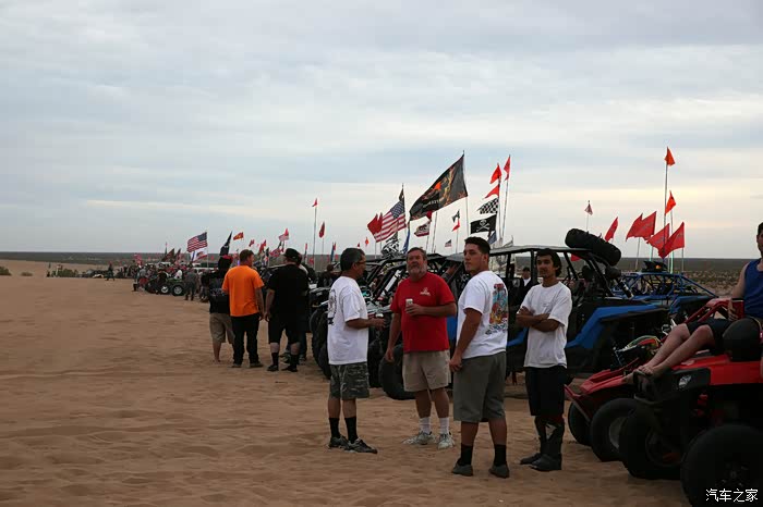 这些既是观众也是演员,大家跑一圈回来看别人表演,休息一会再接着上,一时间沙漠里变成了各种车的表演场,空中还有直升飞机盘旋,那是美国边防警备队的,这里离边界非常近,据说每天都有上百的人从墨西哥经过这片沙漠偷渡过来,