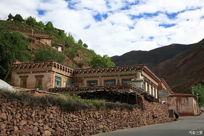 这是新的藏式民居,很多已经不用原木,但结构依然保留藏式民居的特点。