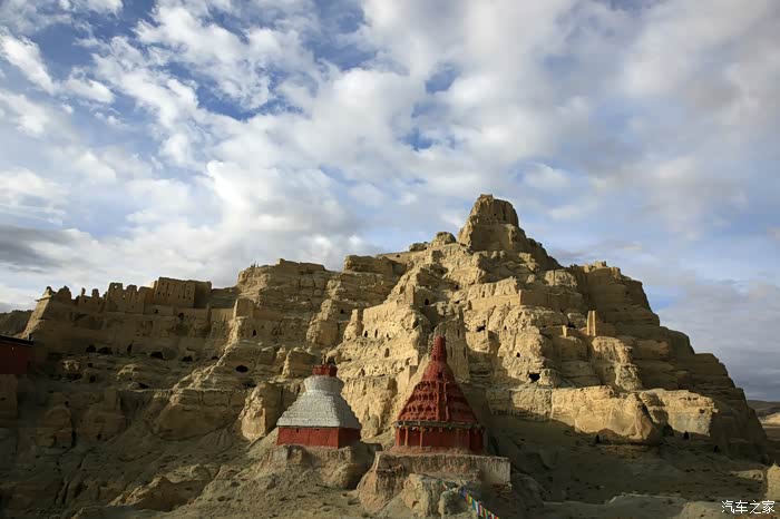 虽然是早上7点50了,但这里的太阳才刚刚露出云端,一缕金色的阳光打在古格王国的城堡顶端!日照金山咱没看见,但日照古格我没错过!