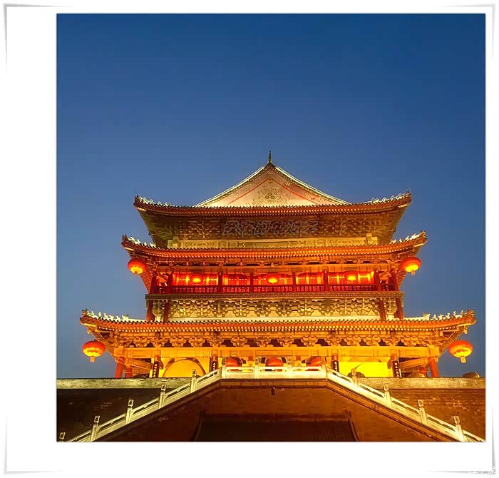 饭。下午四多点到达预定的酒店。安排好住宿就步行游览了钟楼和鼓楼,然后去吃小吃,逛夜色