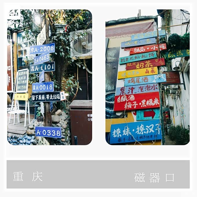 磁器口,我们坐地铁去的,一个多小时就到了。磁器口和很多古镇大部分都是一样的,商业品居多,里面吃的也是比其他地方要贵,我们去的时候还算是淡季,依旧人山人海。里面的东西随便尝一点就好了,感觉很多东西在某宝就能买到,也不一定非要在那里买,然后带回家。很多东西我们都没吃,所以也不太好评价,但是古镇鸡杂可以去试试;格桑家的酸奶也不错,但是挺难找的,喜欢吃酸奶的朋友可以导航一下;有一家紫薯酸辣粉看起来还不错,我们去的时候还有电视台采访呢,但是价钱也不算便宜,15元左右,因为我们是吃了早餐过去的,所以也没有去吃,感兴趣的可以尝试一下;最大头的就是陈麻花了,很多店家都打着陈麻花的名号(据说陈建平麻花是最好吃),想要辨别还是看中国人的特性了,哪里人多就是哪里,买多的可以快递,所以不用担心买太多的问题。因为不太喜欢沉重的历史记忆,所以我们就放弃了去白公馆和渣滓洞的行程。 长江索道,可以观看长江两岸的风景,推荐傍晚去,一是市民卡可以打折1.8元/人(一定要注意市民卡使用时间,最后提前去,不然人很多很难排队),二是来回可以看到不一样的景色,傍晚和晚上。尽量站在窗边,视角简直棒极了,售票处门口有很多h牛,如果只想做来回,不去南山一棵树的话,推荐大家买h牛票,可以讲价,性价比很高。我们计划要去南山一棵树,所以只好买了全票,单程20元/人,往返30元/人。 南山一棵树,说实话,这是重庆我不推荐大家去的地方(仅个人意见!)。一,很远!坐公车绕来绕去,售票处离公车站很远,要往回走一段路,我们下山的时候直接滴滴打车了。二,门票超级贵,30元/人,学生半价,毕竟学生党,十五元去看个夜景不是很值得,而且只能180度的观看。所以只好在门口照了一张,标上“到此一游”的记号。(如果大家真的很想看夜景,我有一个更好的地方推荐,后文有提及) 解放碑,小时候总是念叨着,人民解放纪念碑,现在终于能看到了,以前它曾是重庆最高的建筑物,现在旁边高楼大厦,鳞次栉比,但是这并没有掩盖住它自身散发的庄严,站在它面前仍自豪是个中国人。解放碑周边现在是一个繁华商务中心,各种国际大牌,见过的没见过的都有,解放碑八一好吃街是必去的地方,超级多好吃的,好又来酸辣粉、巴渝正月山城小汤圆、开心猫串串香、一只酸奶牛,另一个方向还有很多吃的,各种小吃,吃货必去的地方。