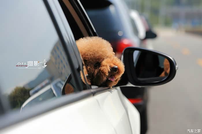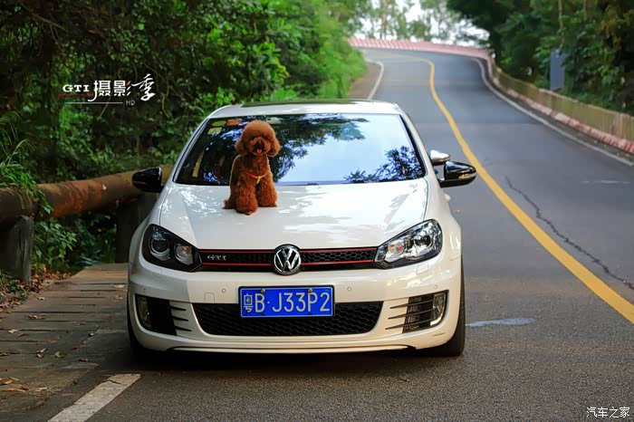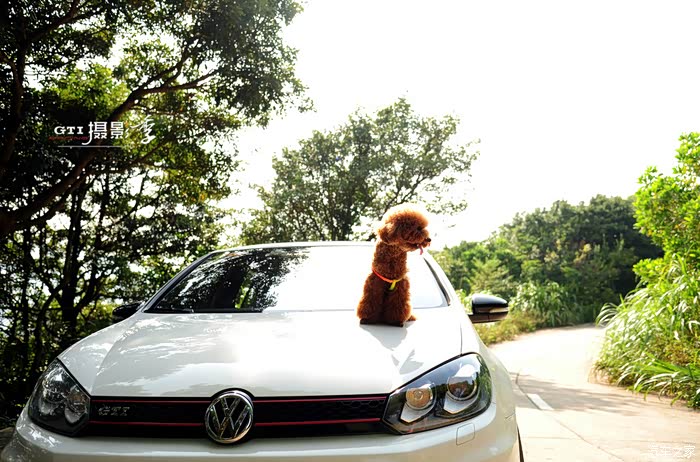 这是小龙的宠物狗,豆豆。它最大的优点就在于,把它放在车上,它绝对不会乱跑,会摆各种萌姿势配合你拍摄。这只小狗让众GTI顿时活泼了不少。