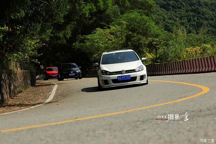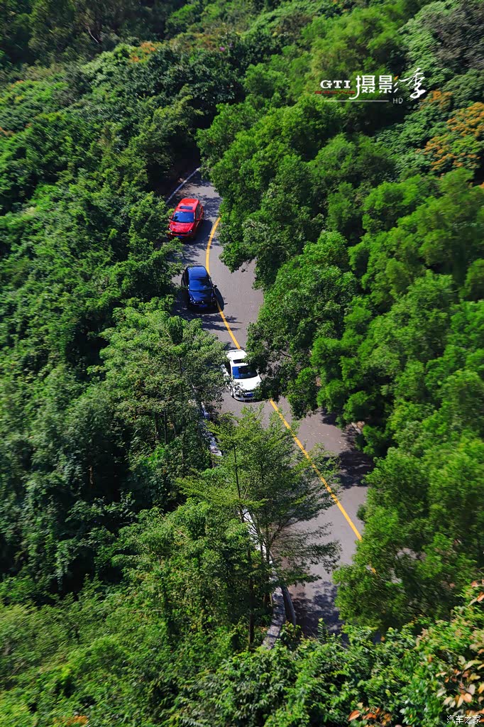 活动的主要拍摄地,三洲田老公路,号称中国的秋名山,看过头文字D的车友都了解这段路的性质。这是一段被封闭的公路,经过友好申请,三辆车得以进入路段拍摄。在这段路上,GTI可谓如鱼得水,连续的急弯,甚至还有360度大拐弯,路面状况非常好。运动姿态的GTI非常酷,如一名悍将,穿梭在山路丛林中。