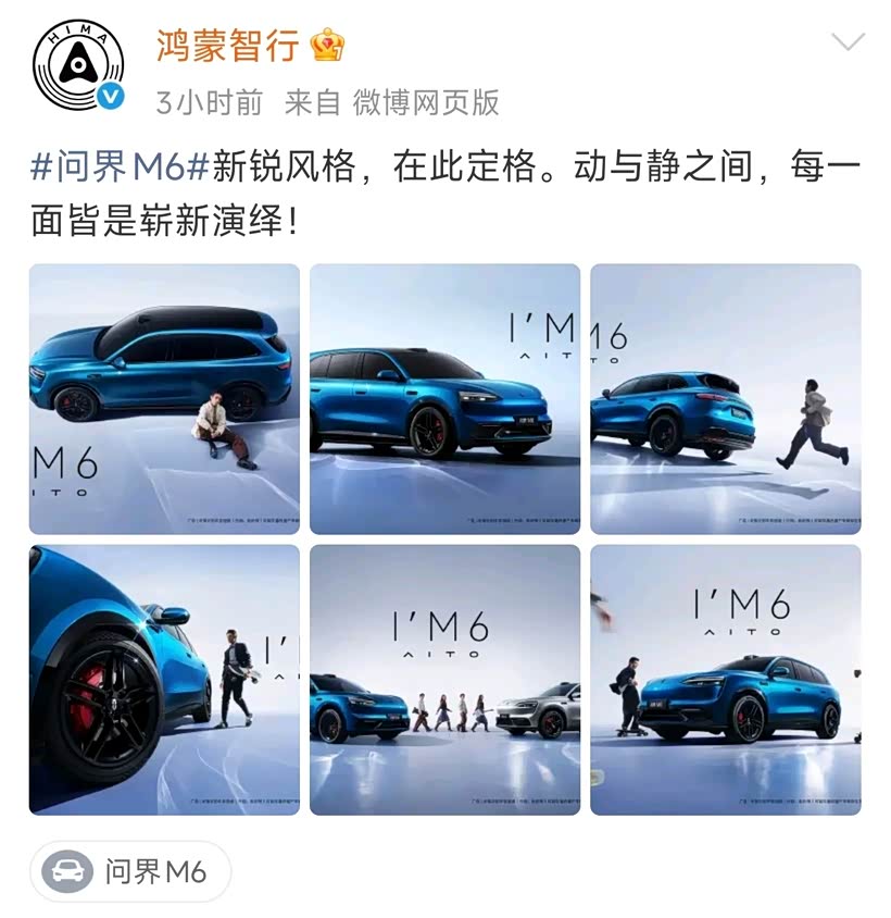 2月3日,鸿蒙智行官方微博放出了问界M6的实图,直接登上热搜!