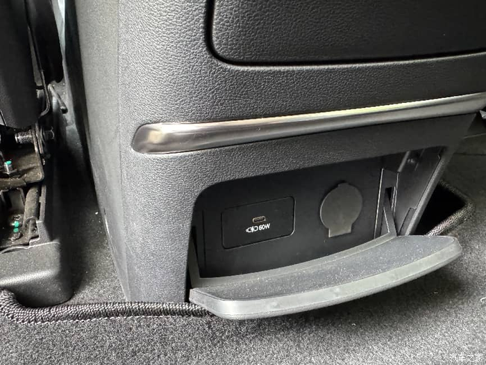 在扶手箱背面挖出一个储物格和充电接口的操作,也算是巧思妙想了,把本来占地方的扶手箱利用了起来,放包纸巾正正合适。