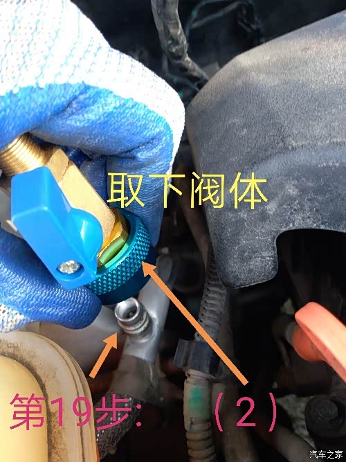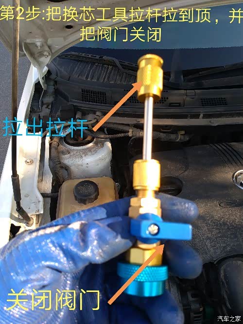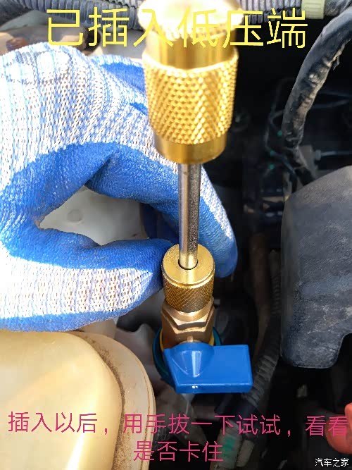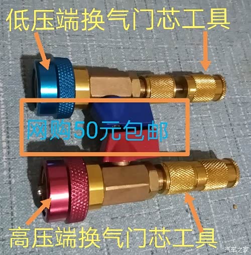 说明,这套换空调气门芯的工具一套2个,因为高低压端接口大小不一样,蓝色的是低压,红色的是高压。真的有难度,不建议自己动手!