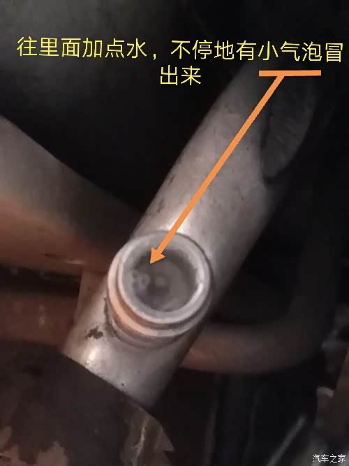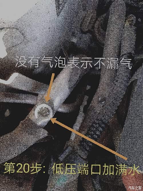 往低压端里倒满水,检查一下是否漏气,如果不冒泡,就证明不漏气了。