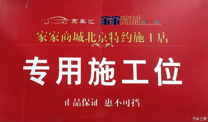 家家商城北京特约施工店专用施工位的表示清晰可见,正品保证,惠不可挡,心里很踏实啊。