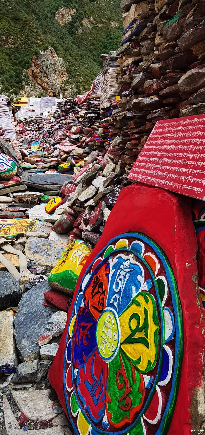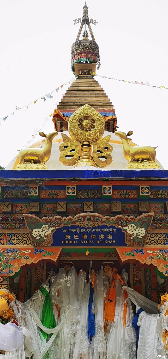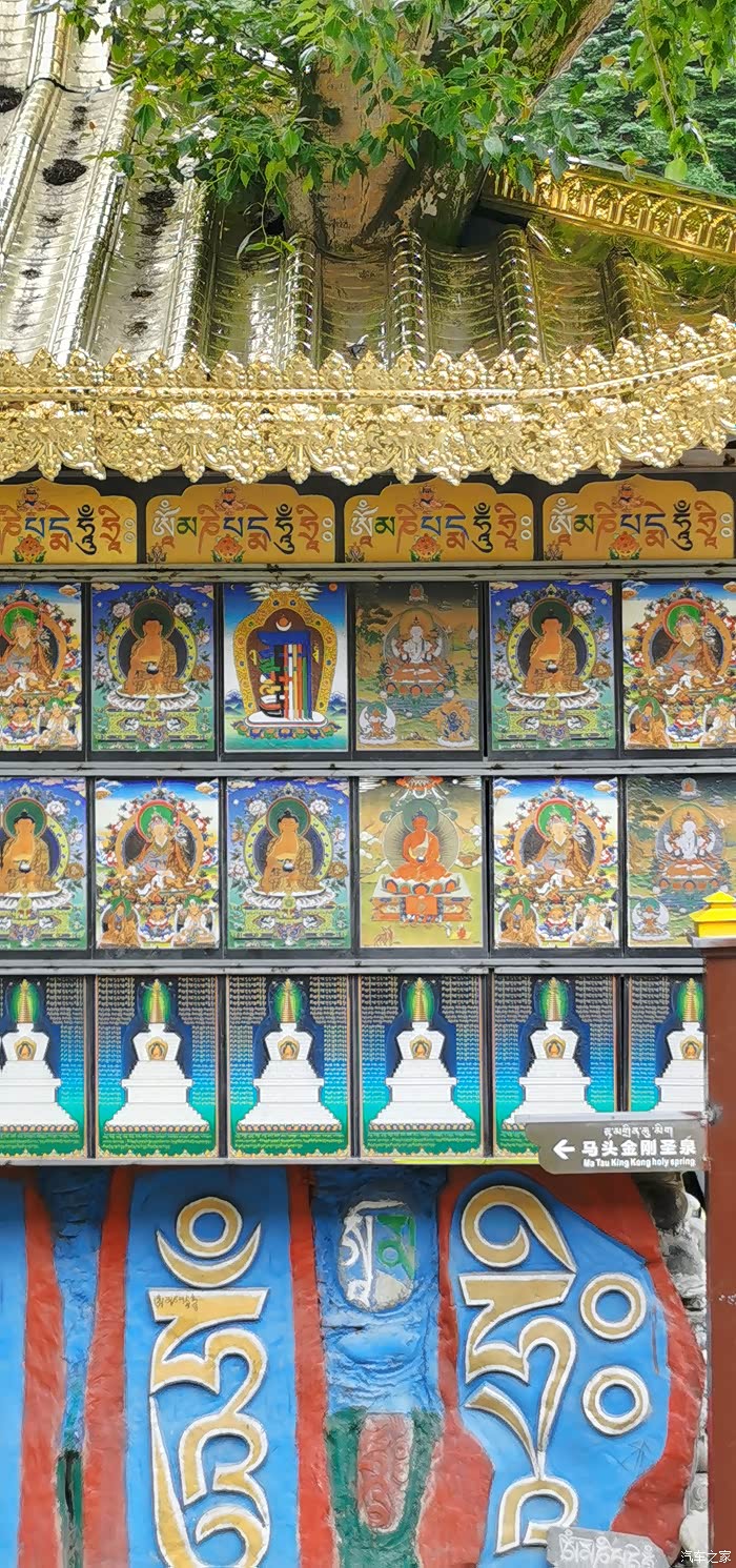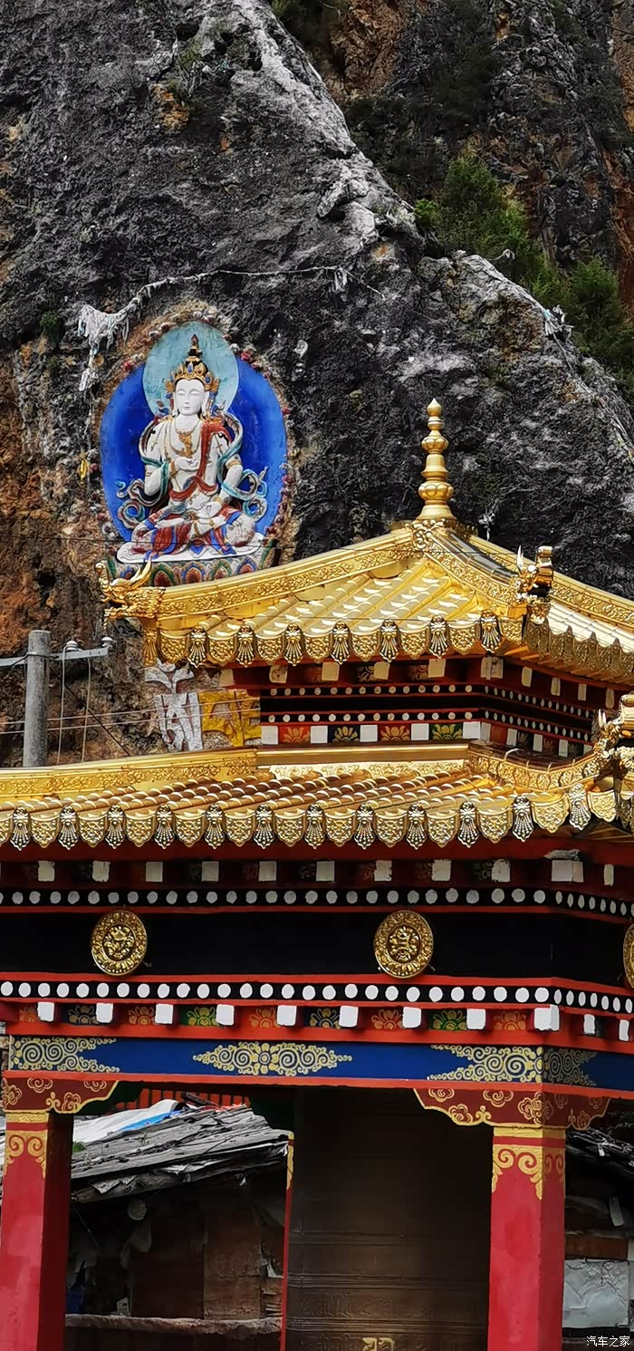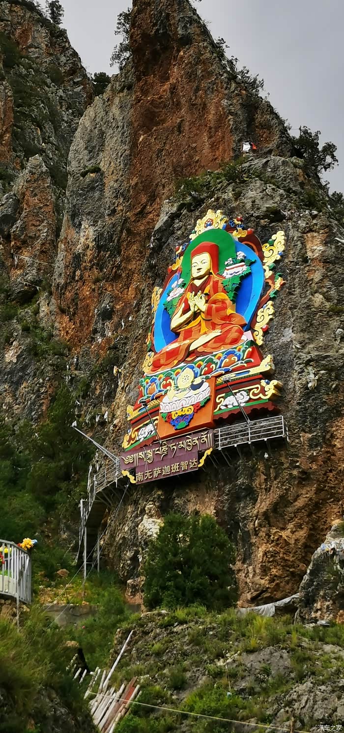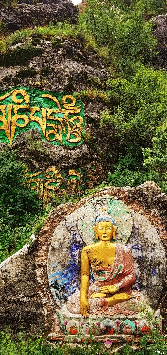 达马洞,这里有着康巴博纳佛塔,释迦牟尼佛入世像,以及公路两侧山体上大大小小、色彩鲜艳、形态各异的佛像。