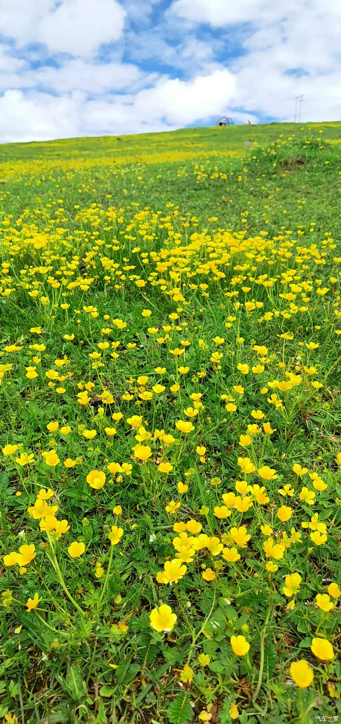 金马草原,以宽、平而著称,蓝天白云和雪山草地融为一体,明媚阳光和朵朵帐房,风景如画。